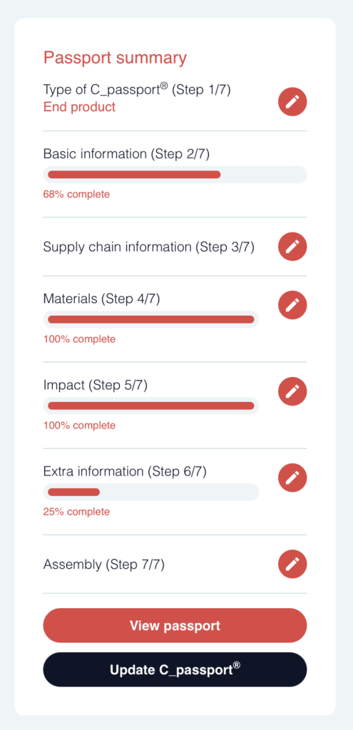 BOM’s worden veel gebruikt in de productie, productontwerp, logistiek, reparatie, duurzaamheidsrapportage en nu ook steeds vaker bij naleving van regelgeving. In DPP’s is het belangrijk om de materiaalsamenstelling te begrijpen en op transparante wijze te communiceren. Niet alleen vanwege wettelijke eisen, maar ook omdat de materialen die in een product worden gebruikt en de manier waarop ze tot een eindproduct worden samengevoegd, van grote invloed zijn op de circulariteit ervan. Om producten optimaal te benutten, moeten we dus eerst begrijpen wat erin zit! Binnen ons DPP-platform – C_passport® – visualiseren onze gebruikers hun BOM:
